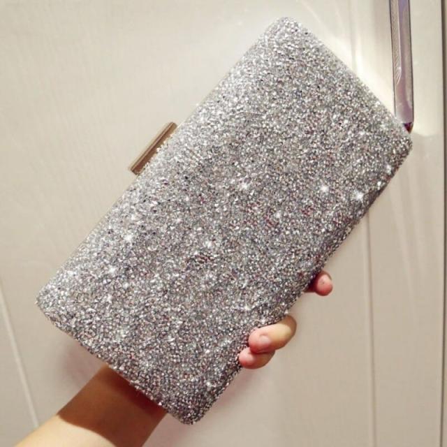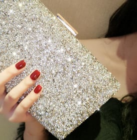 キラキラと輝くクラッチバック。これ一つでパッと華やかな印象に。