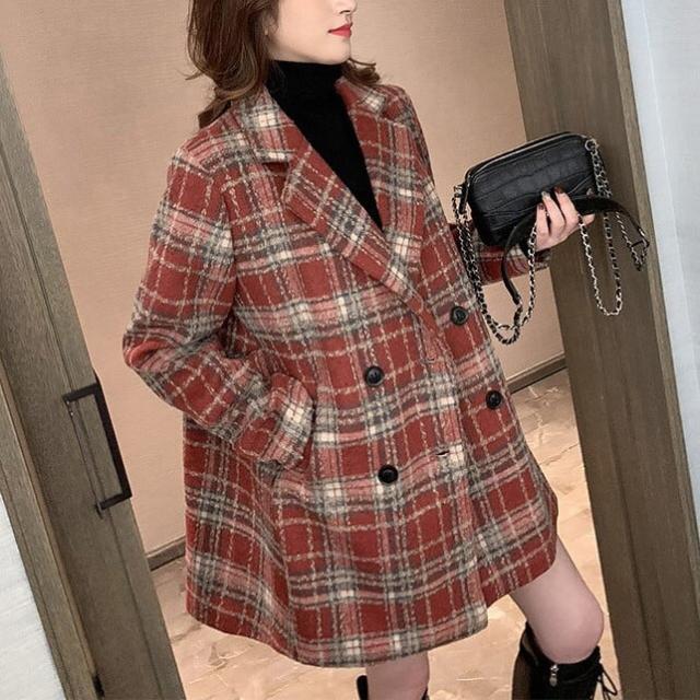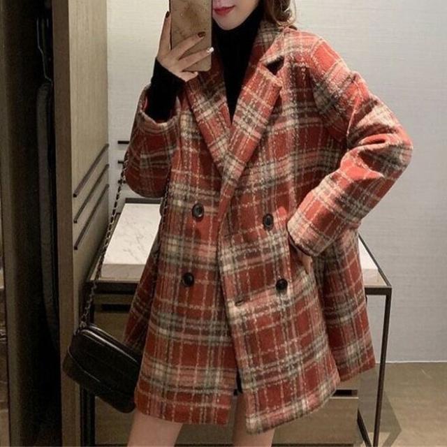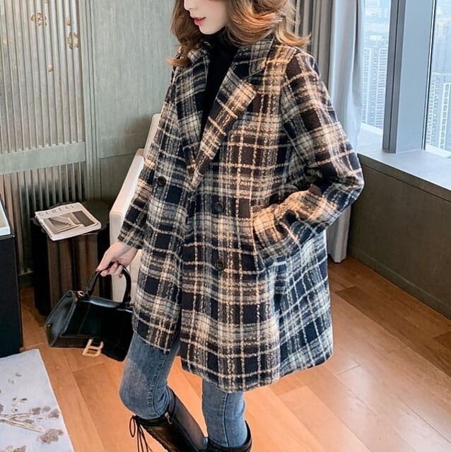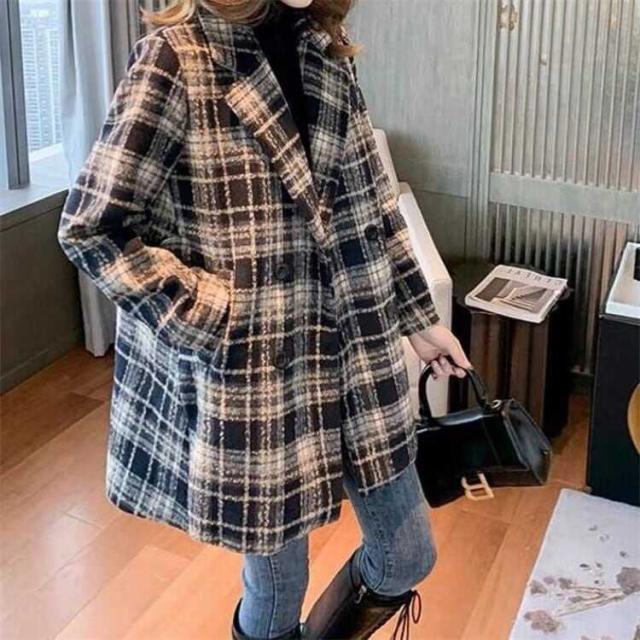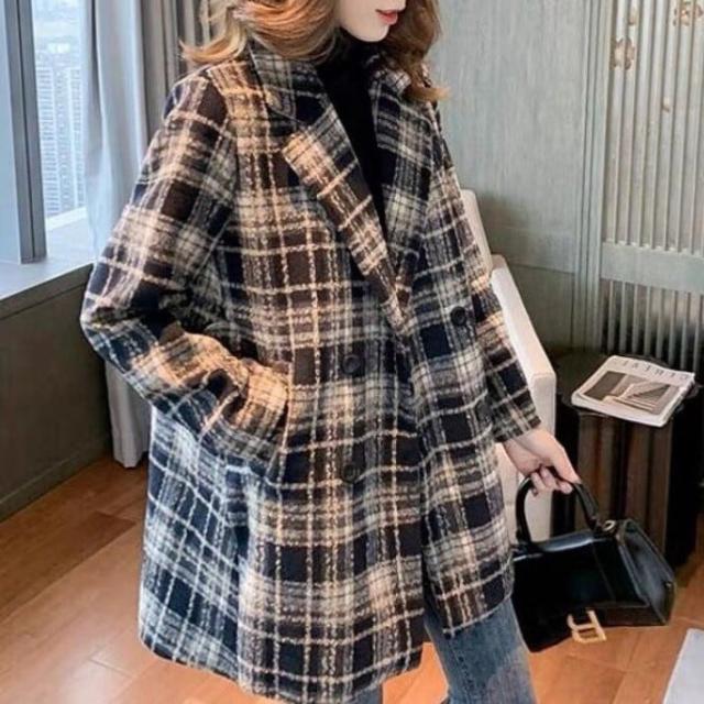 レディース 上着 コート アウター 美シルエット チェスターコート ミドル丈 ラペルネック チェック柄 インスタ映え 可愛い かわいい 韓国 かっこいい カジュアル 大人 上品 シンプル