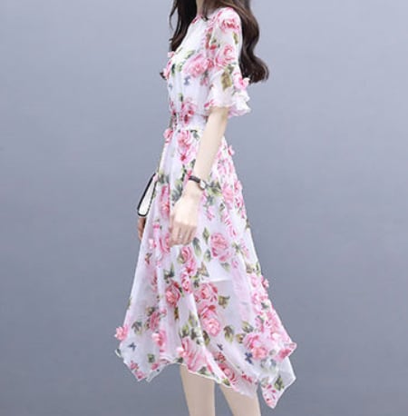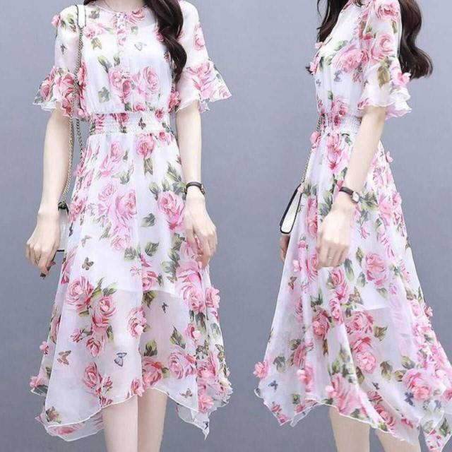ワンピース 上着 人気 おすすめ おしゃれ お洒落 激安 安い 送料無料 プチプラ シースルー 半袖 ふんわり Aライン 柄 フリル プリント 花柄 透け 可愛い かわいい 韓国 きれいめ 大人 上品 春