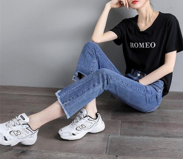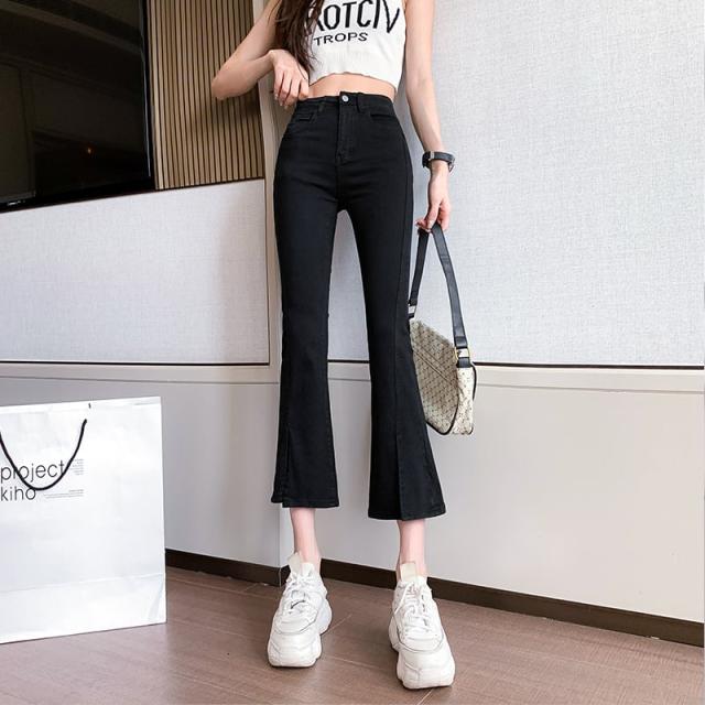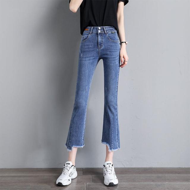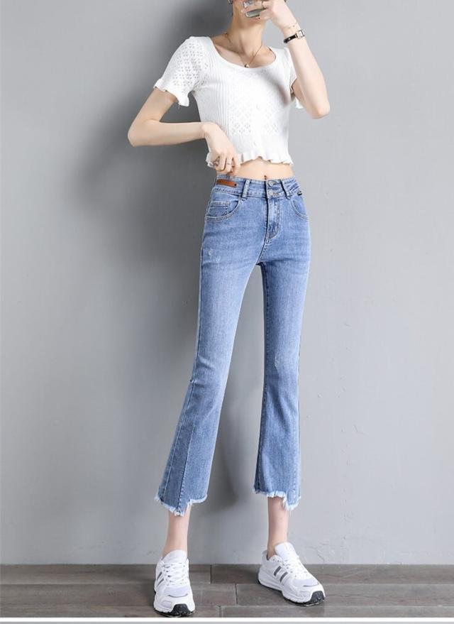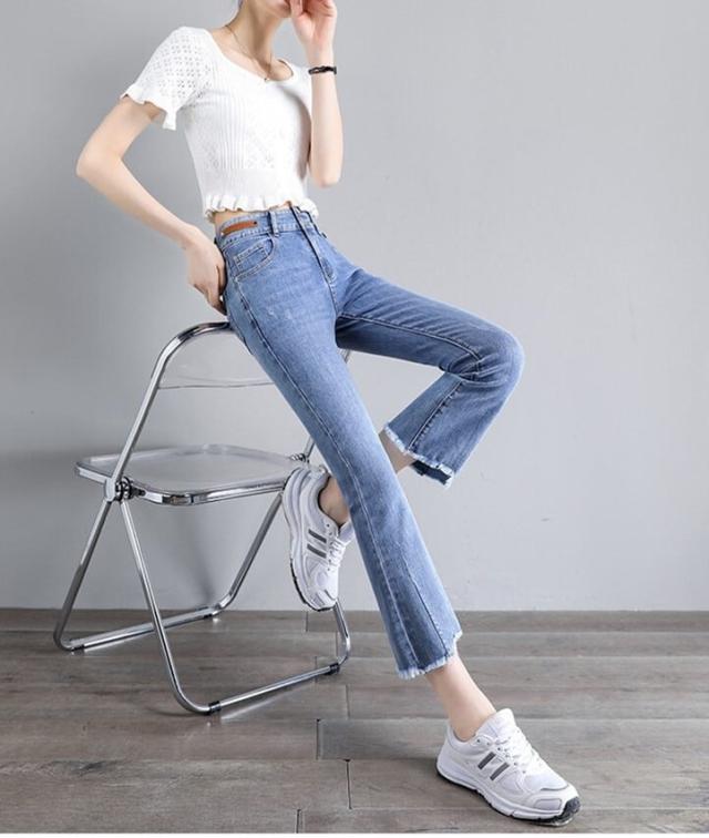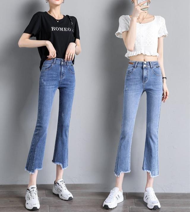 ダメージ ジーンズ ズボン 長 ズボン フレア ズボン ジーパン フレア パンツ ハイ ウエスト 骨格ウェーブ ストレッチ ミモレ 丈 スキニー スリット ストレッチ 美脚 動きやすい 韓国