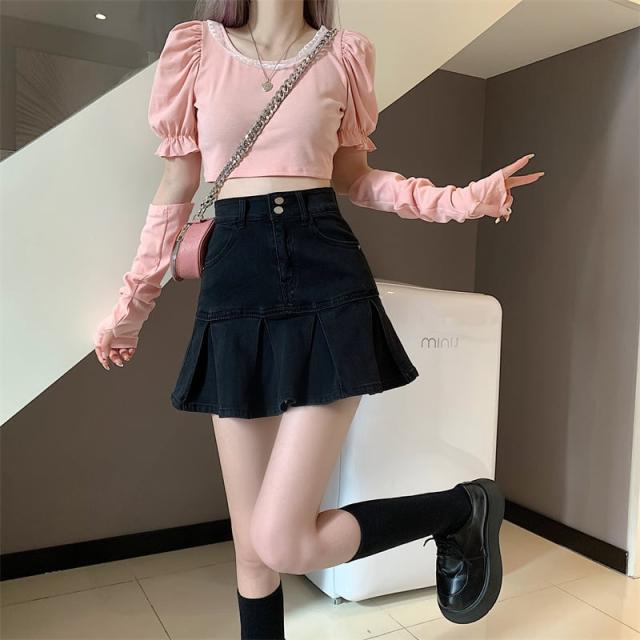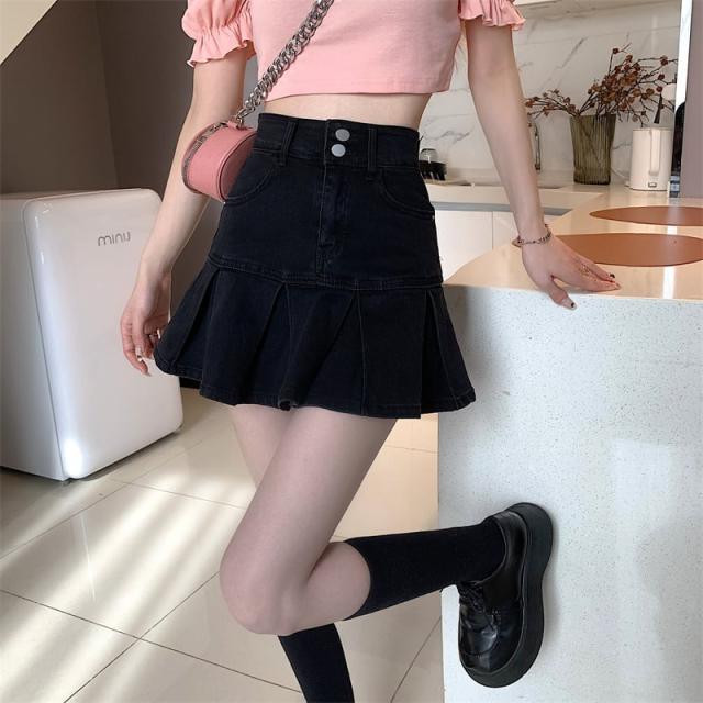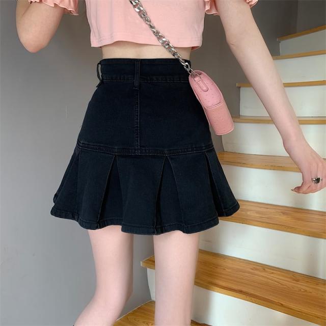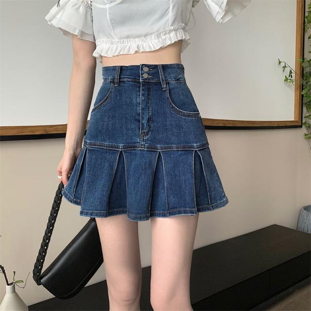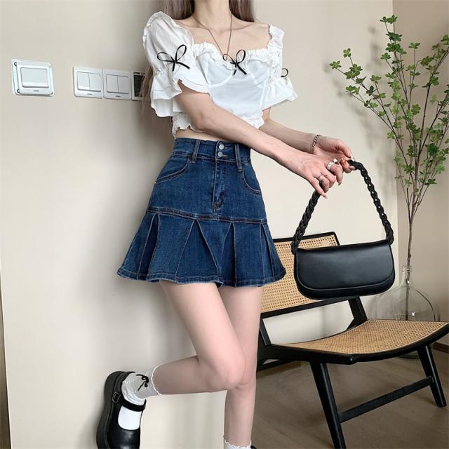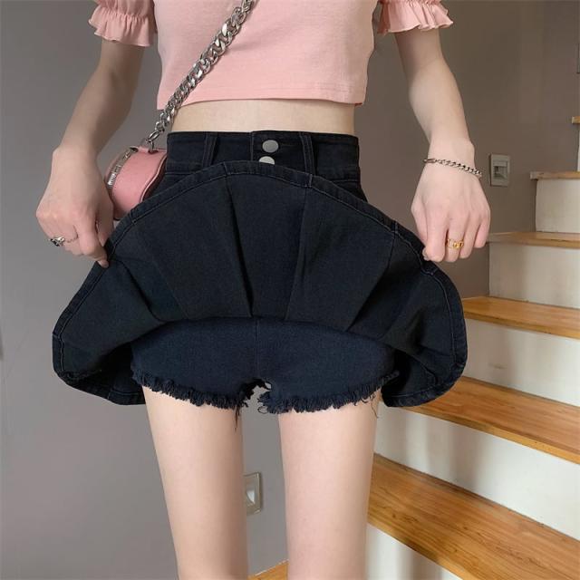 スカート ボトムス ミニスカート デニム ブルー プリーツ テニススカート インナーパンツ付き 切り替え ダメージ ウォッシュ加工 ヴィンテージ風 大人女子 カジュアル セクシー HIPHOP