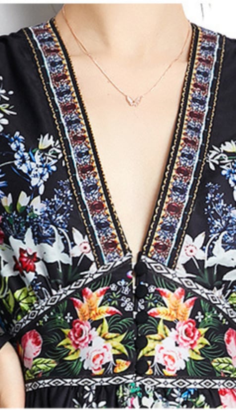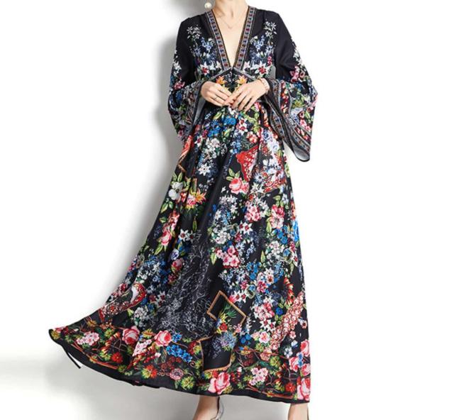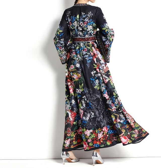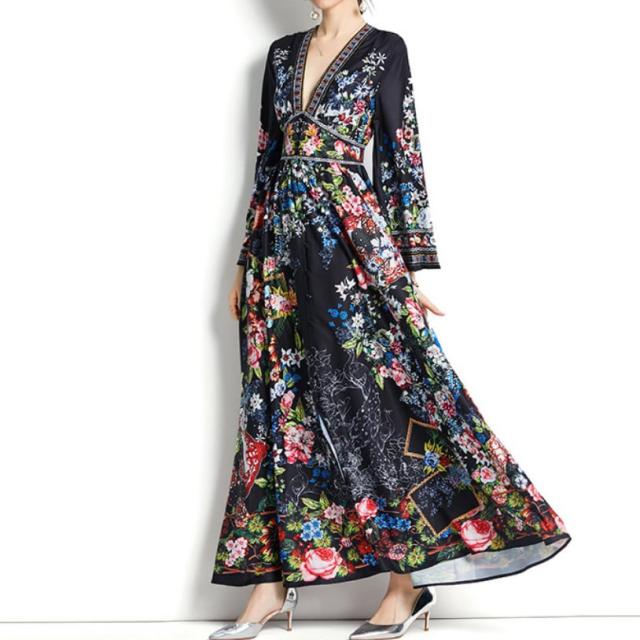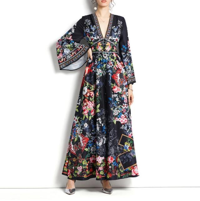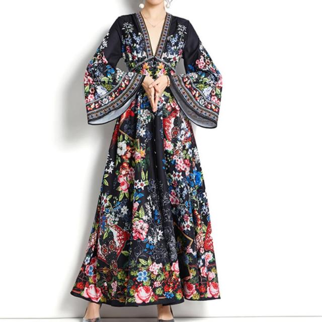 ワンピース 上着 人気 おすすめ おしゃれ お洒落 激安 安い 送料無料 プチプラ 長袖 ロング Vネック ふんわり オーバーサイズ Aライン 柄 エスニック ボヘミアン シフォン プリント 可愛い