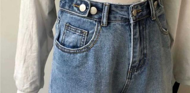 股上深めのハイウエストデニムパンツ。