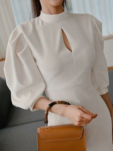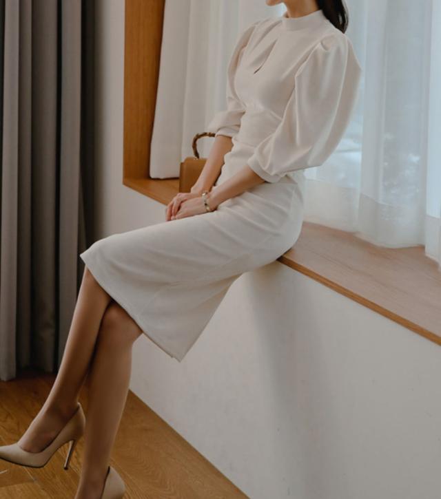 ハイネックとふんわりスリーブが上品でフェミニンなコーディネートにぴったりな一枚。