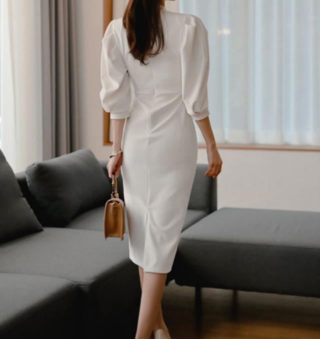 シックですっきりとしたシルエットのフォーマルワンピース。