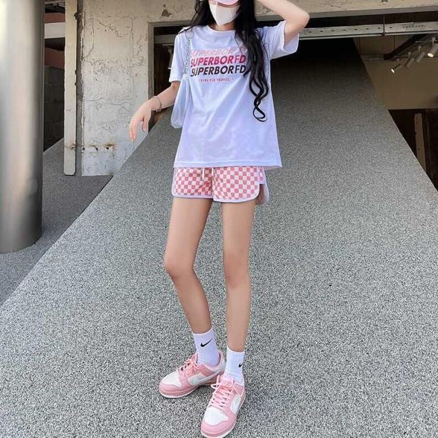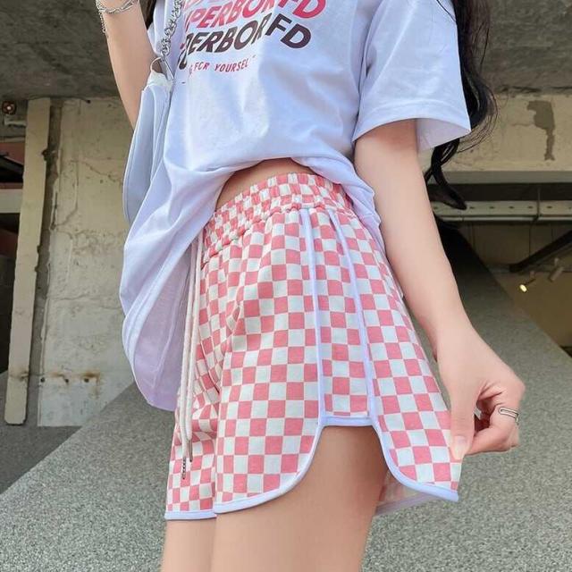 ショートパンツ ボトムス ラフパンツ フレア 市松模様 チェック柄 バイカラー スポーティー カジュアル 運動 ストリート メロウ フレアパンツ スリット ウエストゴム セミフレア パンツ