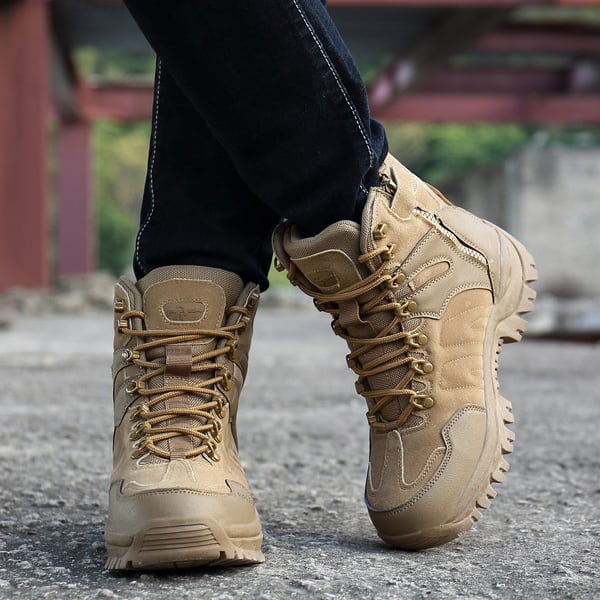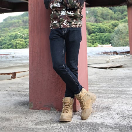 - ブーツのようなデザインでしっかりとした存在感があります。レースアップ仕様で足首をしっかりホールドし、歩きやすさも抜群。ミリタリーブーツ風のディテールがクールで、カジュアルからバイクライディングまで幅広く活躍します。ソールの厚みがしっかりあり、長時間履いても疲れにくいです。ワークブーツやライディングシューズとしても頼れる一足で、どんなコーデにも取り入れやすい万能スニーカーです。