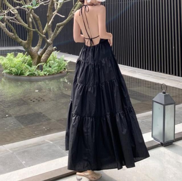ワンピース 上着 人気 おすすめ おしゃれ お洒落 激安 安い 送料無料 プチプラ 肩出し ノースリーブ マキシ キャミトップ ロングスカート 背中開き Vネック ウエスト 無地 ポリエステル
