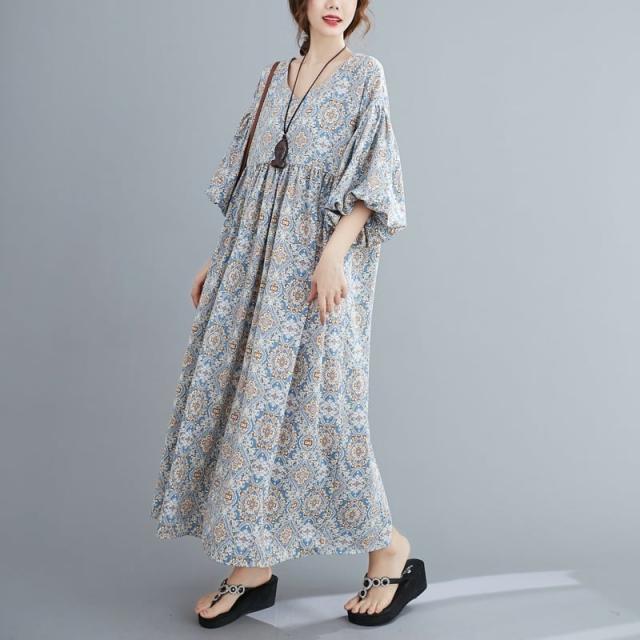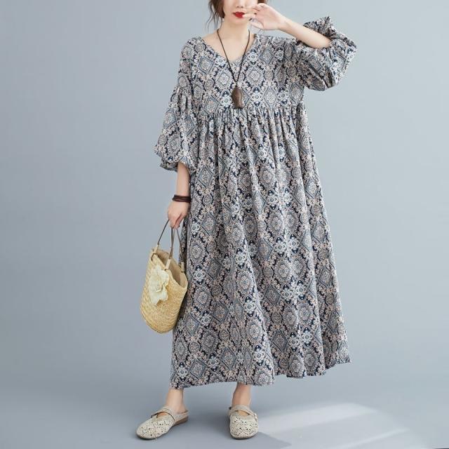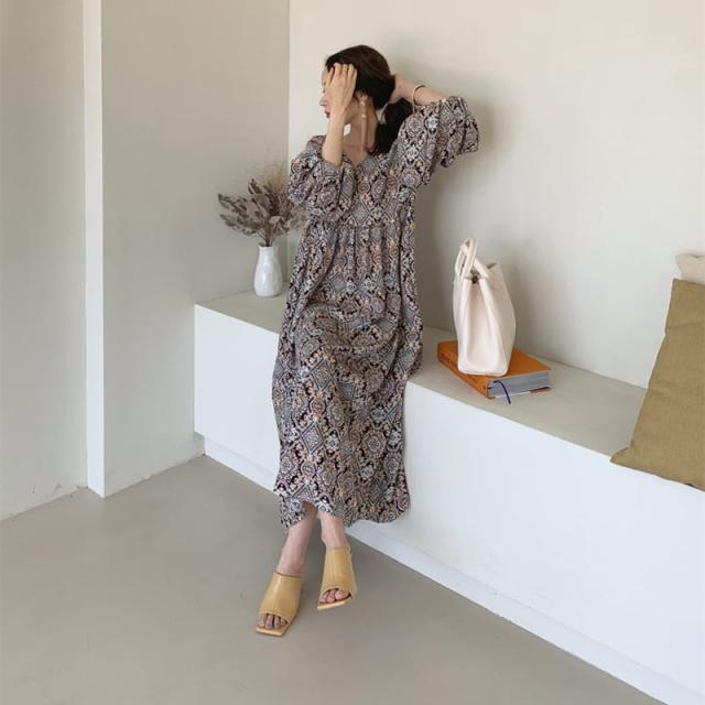 ワンピース 上着 人気 おすすめ おしゃれ お洒落 激安 安い 送料無料 プチプラ 長袖 ロング ラウンドネック マキシスカート 丸首 柄 エスニック ポリエステル プリント オリジナル 韓国