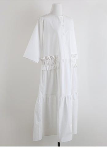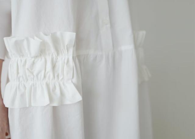 ワンピース 上着 人気 おすすめ おしゃれ お洒落 激安 安い 送料無料 プチプラ シャツ 長袖 ロング マキシ ラウンドネック 丸首 無地 フリル コットン 綿 ポリエステル 可愛い かわいい 韓国