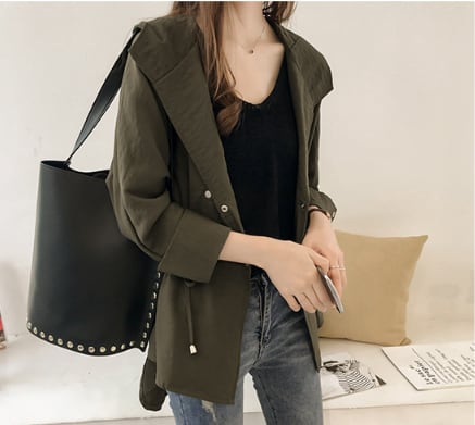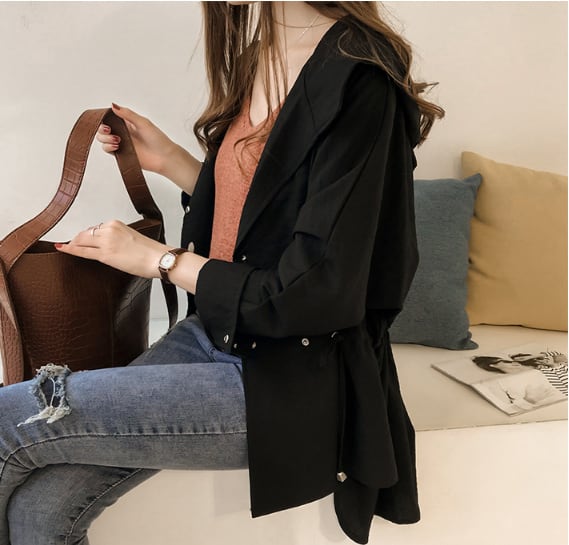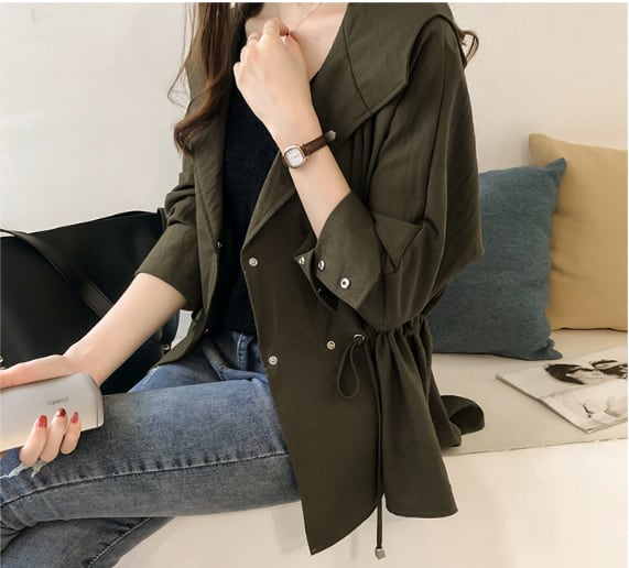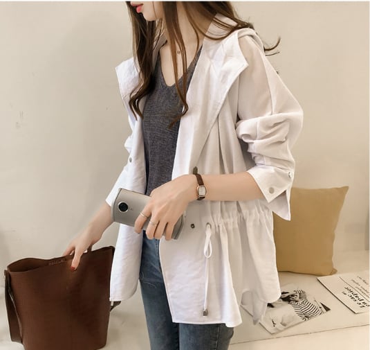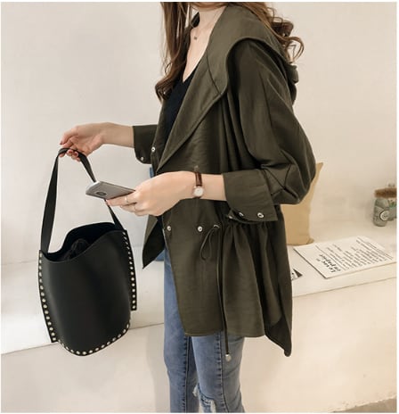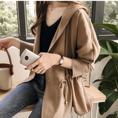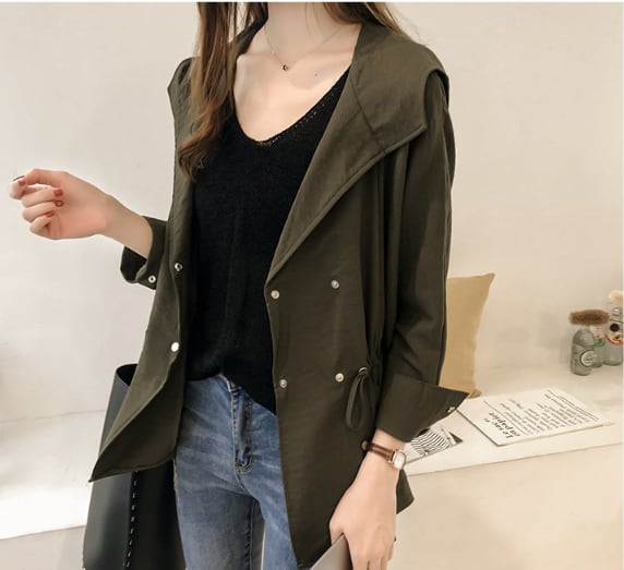 トレンチ コート オーバー コート ウインドブレーカー ルーズコート チュニック丈 フード パーカー 無地 薄手 軽い 体型カバー 着回し力 きれいめ 韓国 大人 シック 春 スプリング 春先 秋