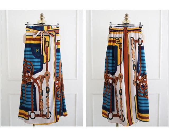 スカートは巻きスカート、ボタンで留めますが後ろ部分はゴムです。