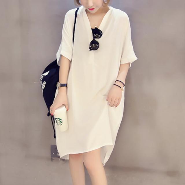 ワンピース 上着 人気 おすすめ おしゃれ お洒落 激安 安い 送料無料 プチプラ ブラウス シャツ 半袖 Vネック ふんわり オーバーサイズ 膝丈 ミニスカート 無地 可愛い かわいい 韓国