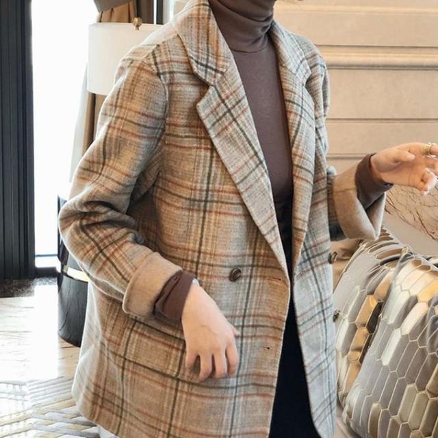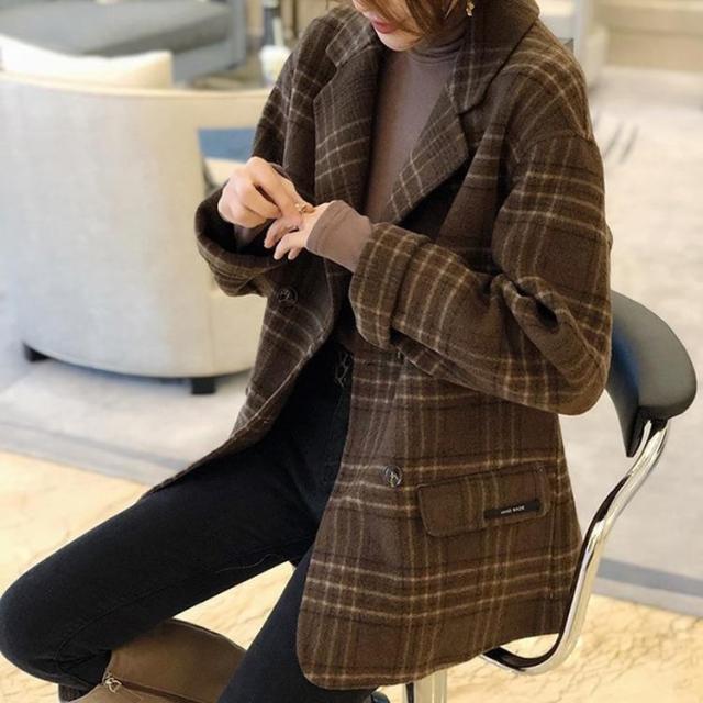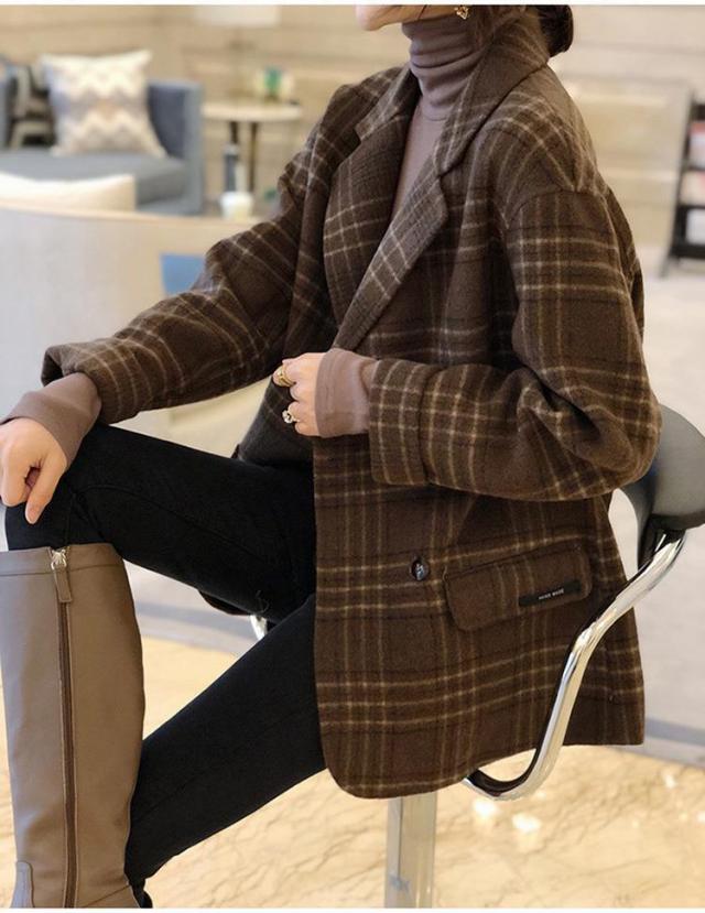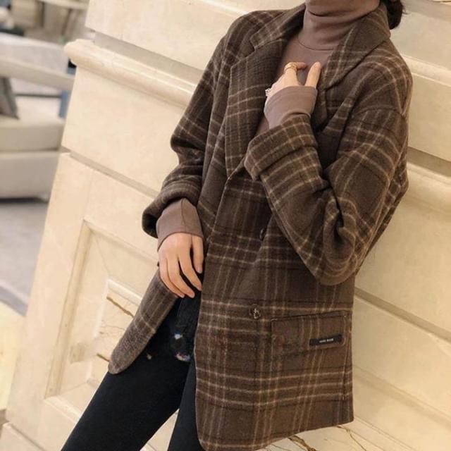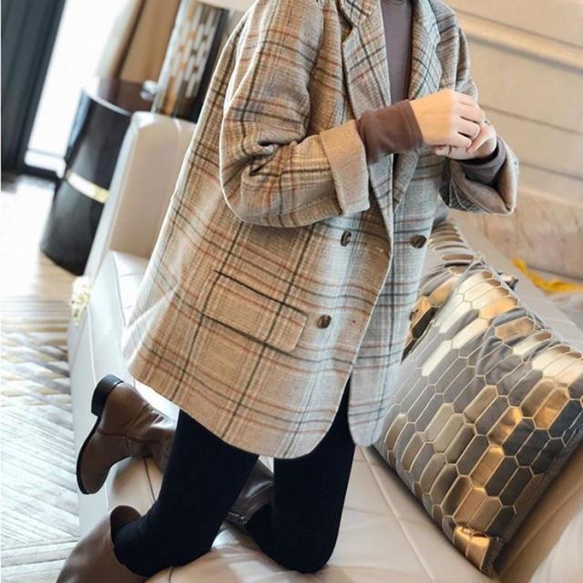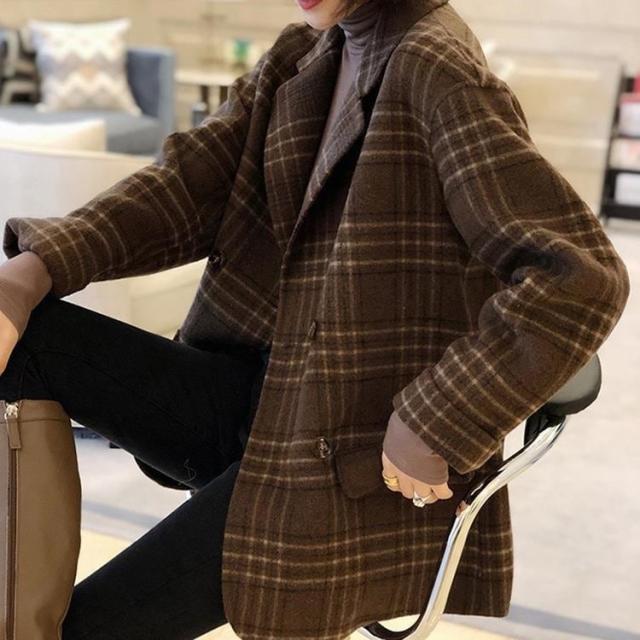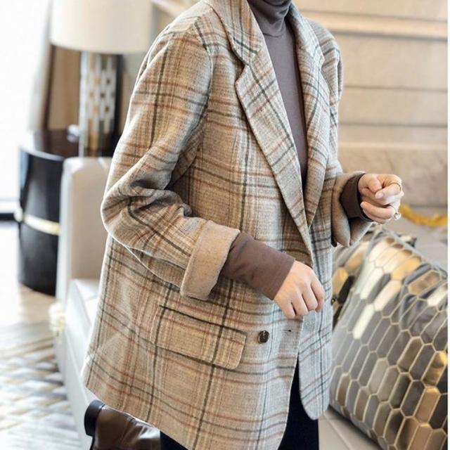 ジャケット レディース テーラードジャケット チェック マニッシュ バイカラー アウター ミディアム丈 オーバーサイズ 韓国風 軽い 軽量 フード付き 冬服 厚手 アウター 暖かい