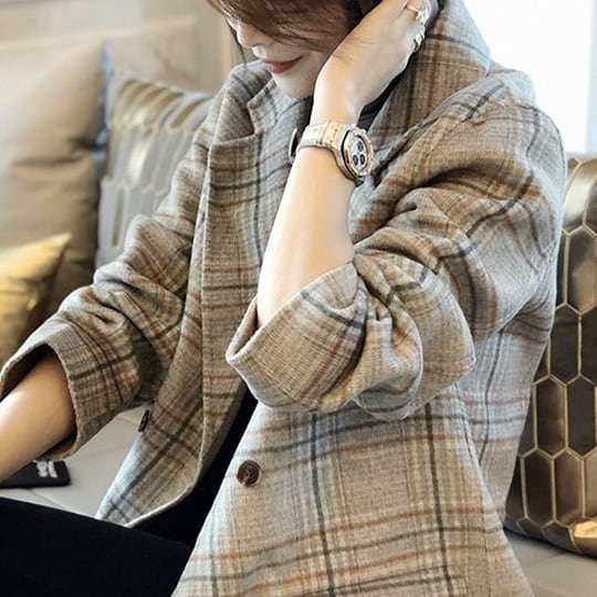 大きめのチェックパターンがクラシカルなテーラードジャケットです。