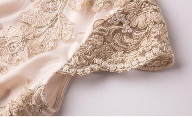 ゴールドのレースとサテン風生地で着心地もよくてシックな一枚。