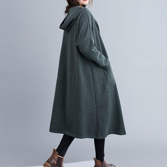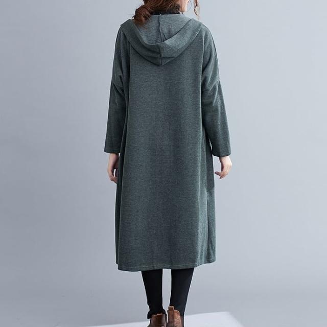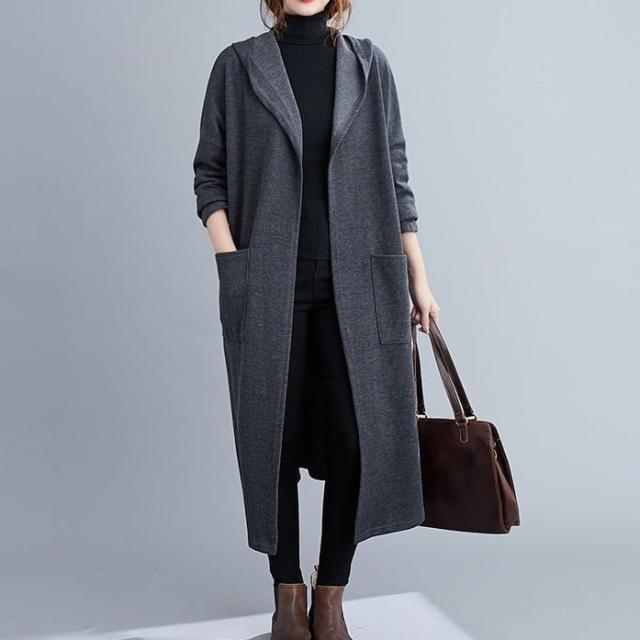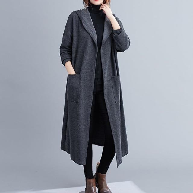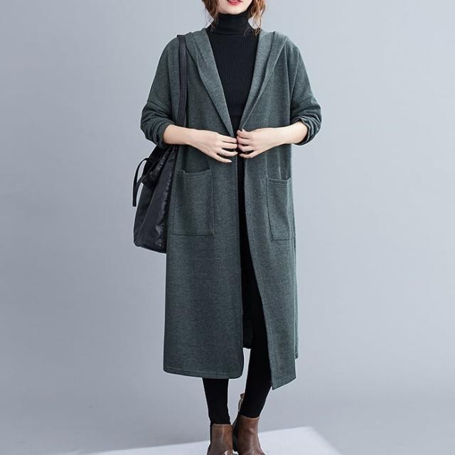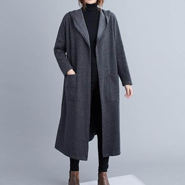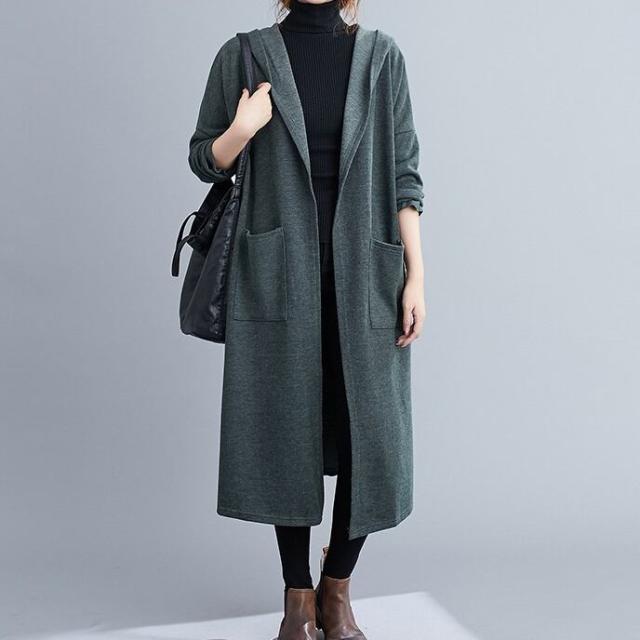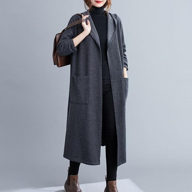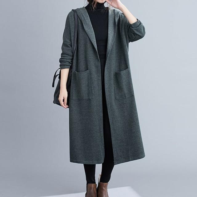 薄手のラフな質感がこなれたフード付きロングコートです。