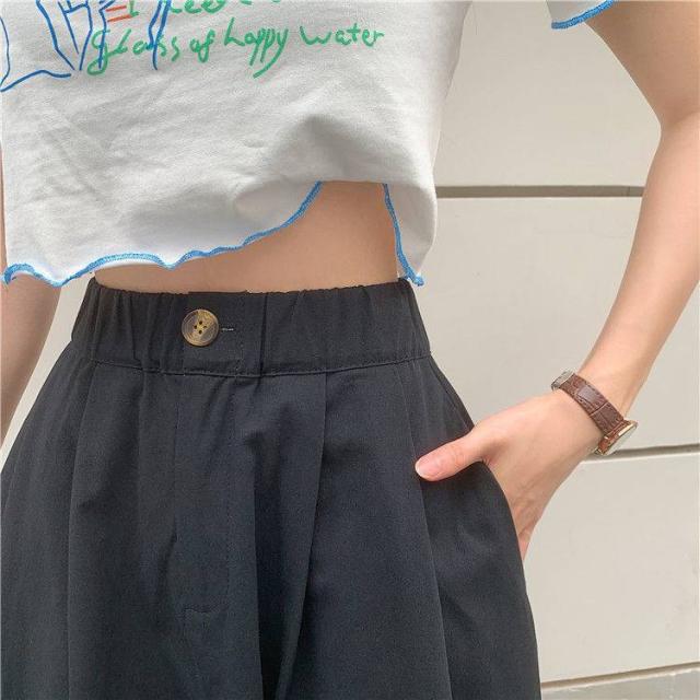 スタイルを綺麗に見せてくれるゴム入りのハイウエストタイプです。
