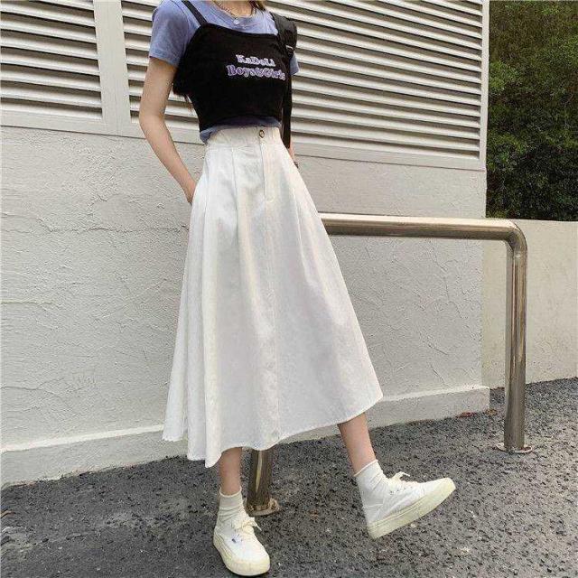 ハリのあるハンサムな質感がこなれたAラインスカートです。