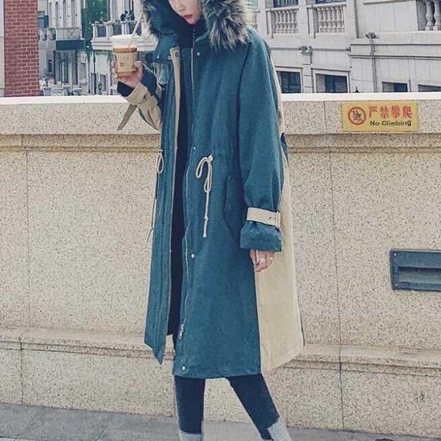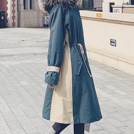 マルチカラ—切り替えが個性的で華やかなモッズコートです。
