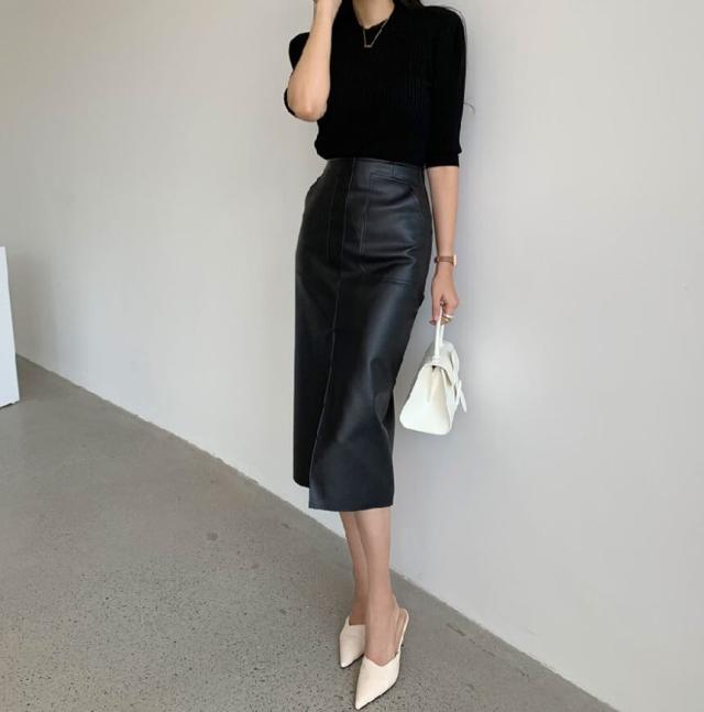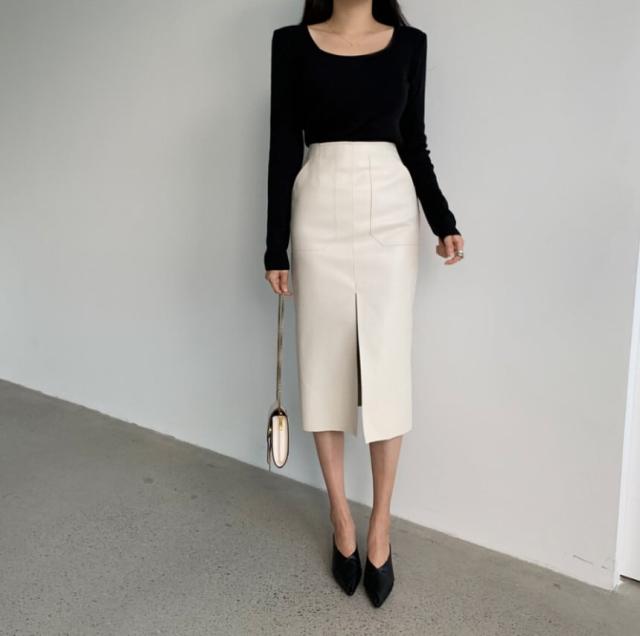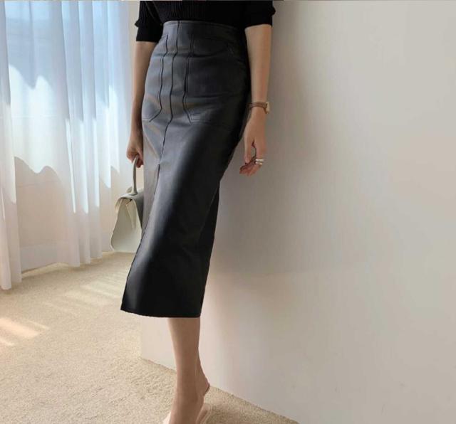 ボトムス ボトム おすすめ おしゃれ お洒落 激安 安い 送料無料 プチプラ スカート ロング スカート タイト スカート ハイ ウエスト 膝丈 スリット フェイクレザー 美脚 韓国 ヒップアップ