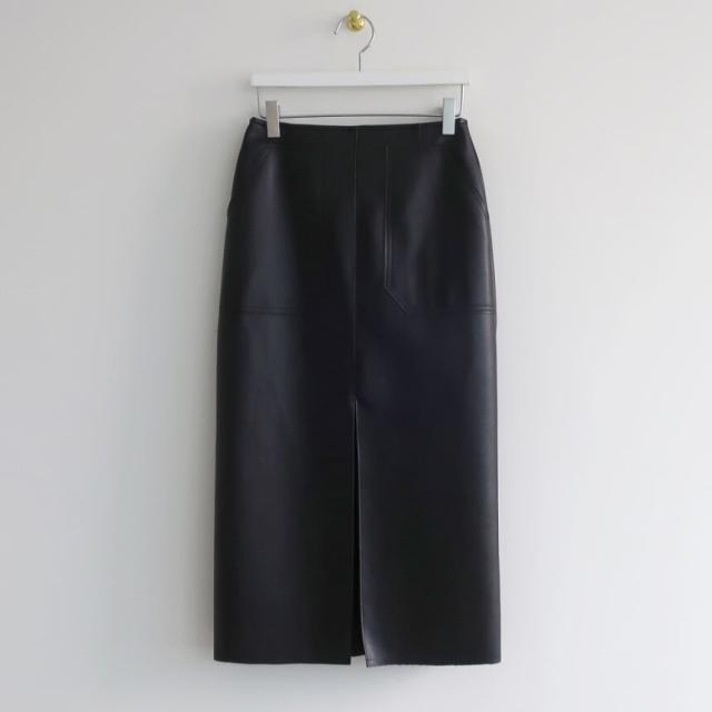 セクシーなラインのタイトフェイクレザースカート。