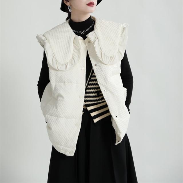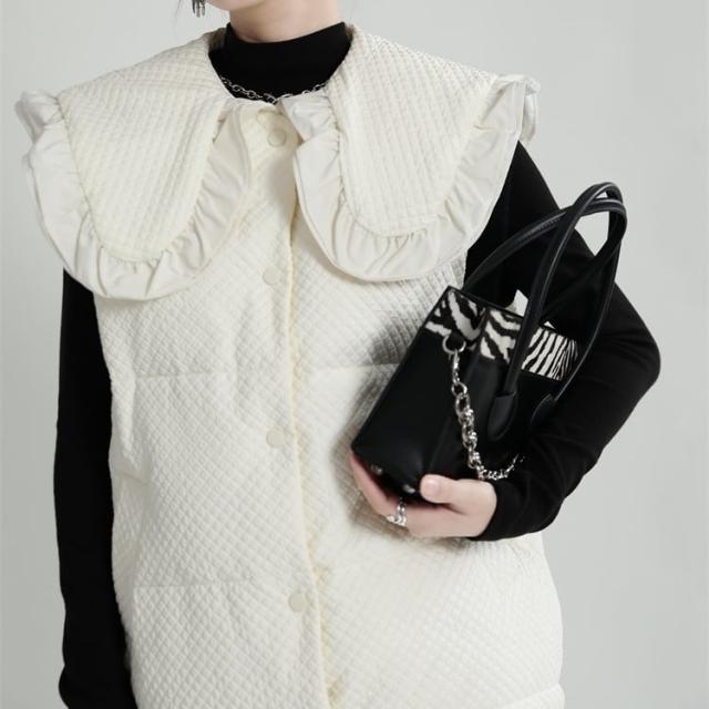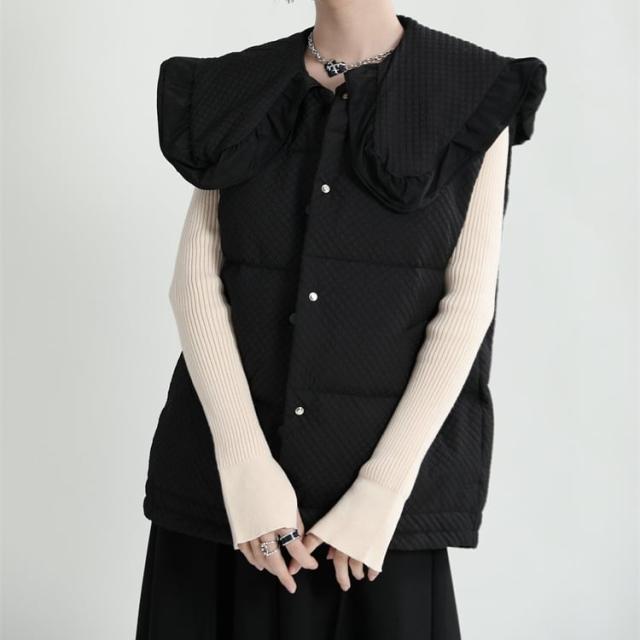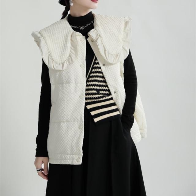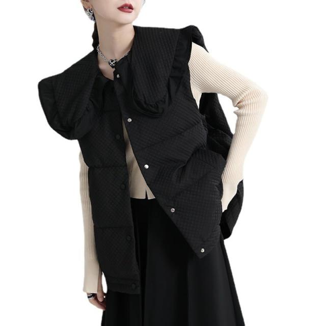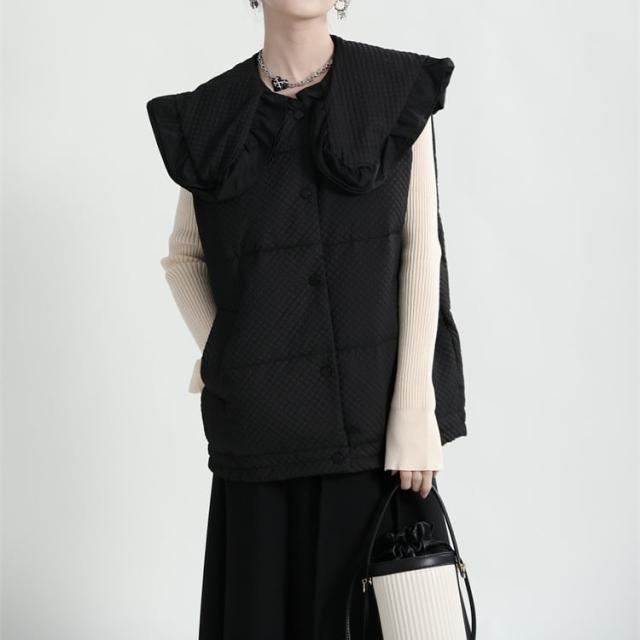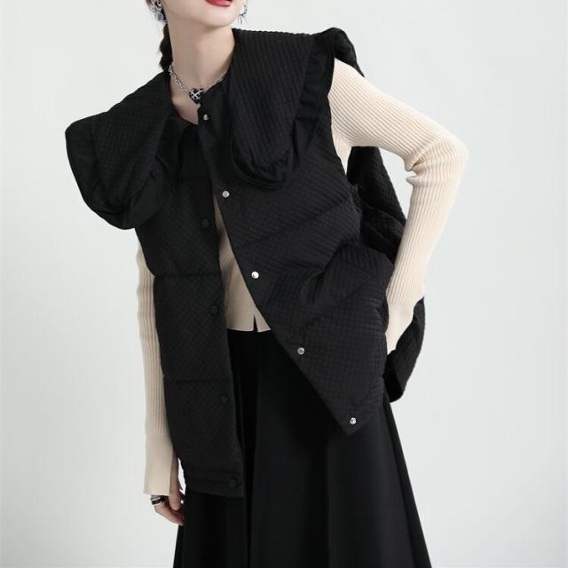 中綿ベスト レディース アウター ダウンコート キルティング ショート丈 襟付き ラージカラー フリル ワッフル 韓国風 中綿ダウンコート 軽い 軽量 フード付き 冬服 アウター 暖かい