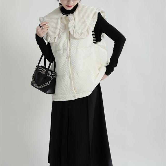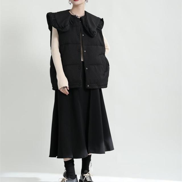 ワッフル加工のふわふわキルティングが可愛い中綿ベストです。