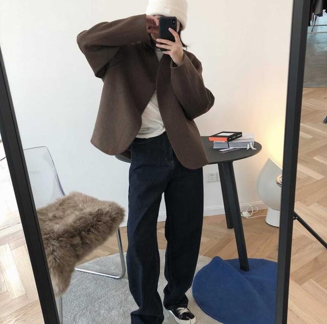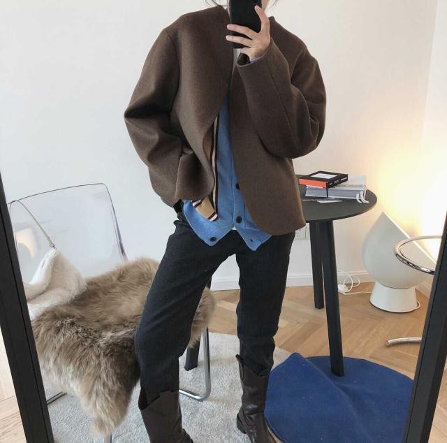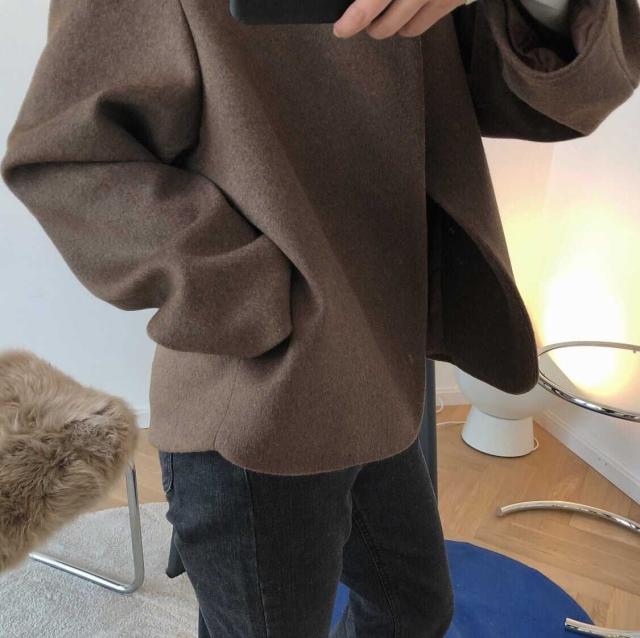 ウールタッチの上品な生地感が大人っぽいノーカラージャケットです。