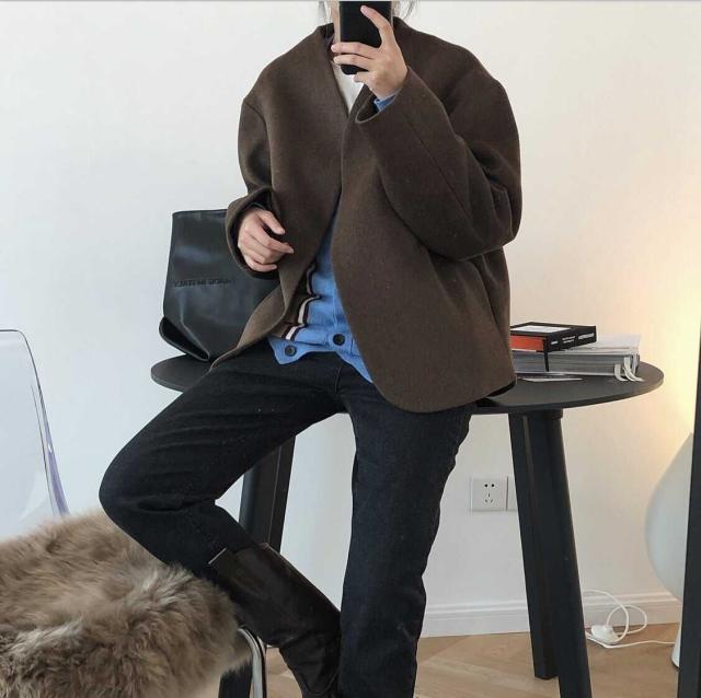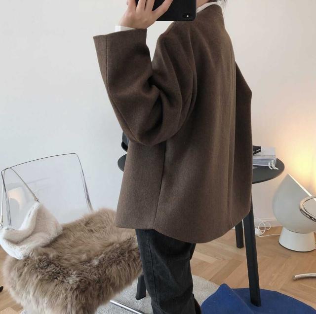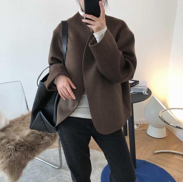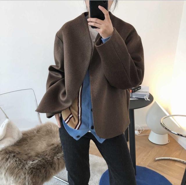 ノーカラーコート レディース アウター 薄手 切り替え ウールタッチ ノーカラー ショート丈 マニッシュ 長袖 韓国風 軽い 軽量 冬服 厚手 アウター 暖かい 大きいサイズ スリム 防寒 10代