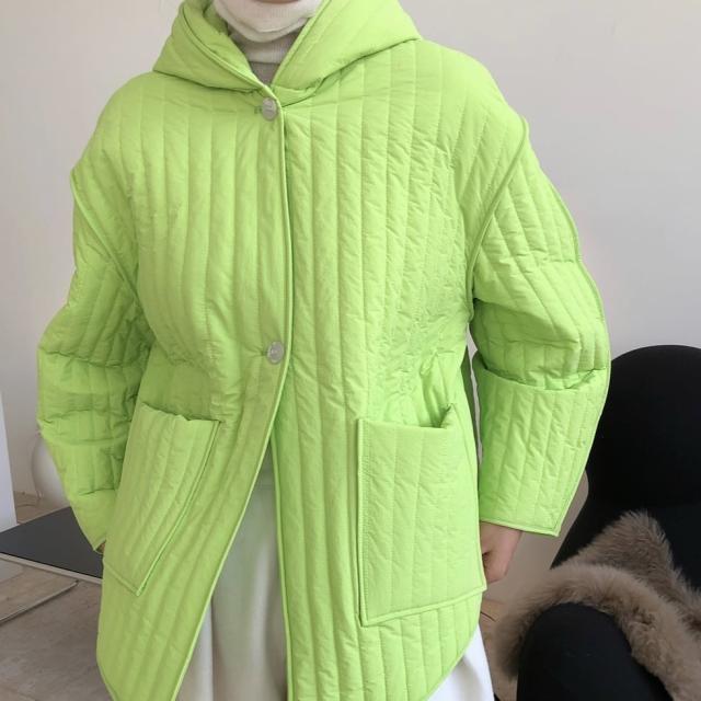 中綿コート レディース アウター キルティングジャケット 切り替え ノーカラー ストライプ フード付き 軽量 薄手 マニッシュ 薄手 韓国風 幾何学模様 ロング丈 軽い 軽量 冬服 厚手