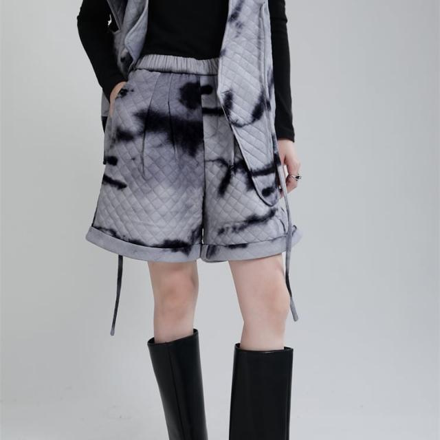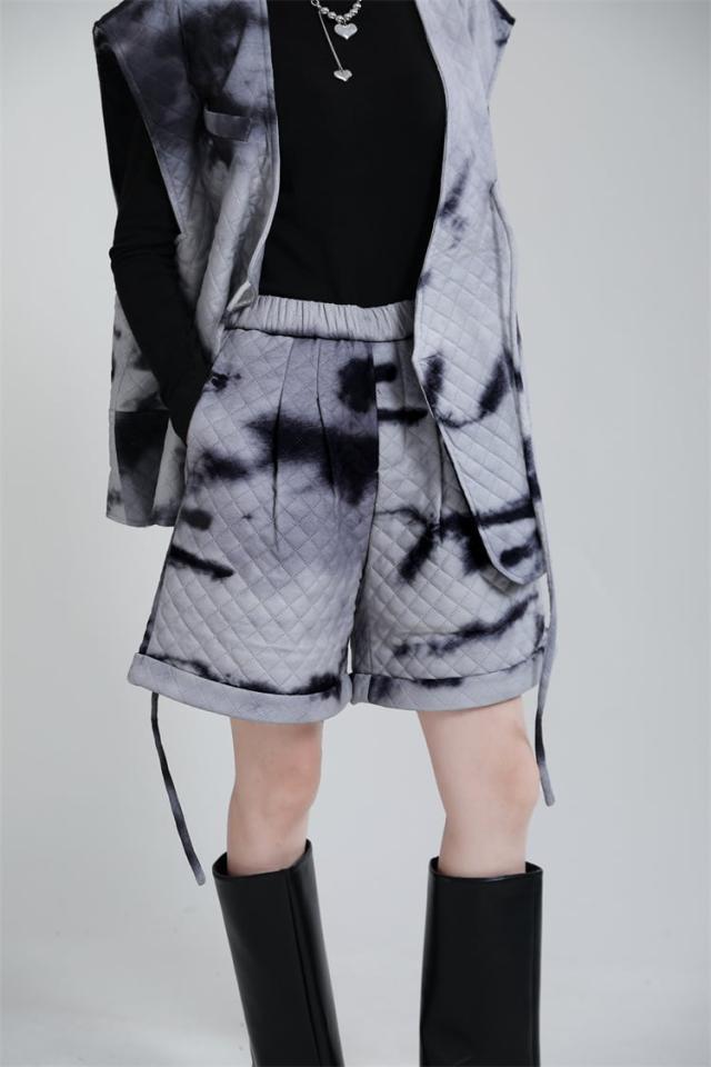 ボトムス ボトム パンツ ホット ロースアップ ハーフパンツ キルティング タイダイ ウエストゴム ハイウエスト ラフパンツ スウェット パンツ ショート パンツ ハイ ウエスト ストレッチ