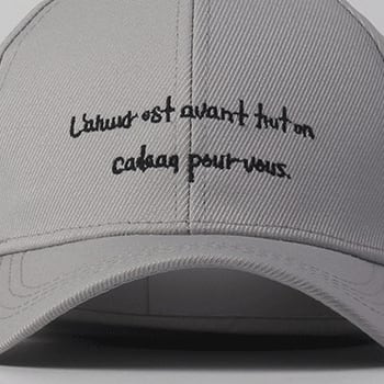 シンプルなアルファベットのデザインをクラウンの前面に施したベースボールキャップです。