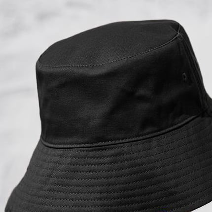 オーソドックスなかたちですが、つば部分にさりげないステッチが入っておりおしゃれなバケットハットです。