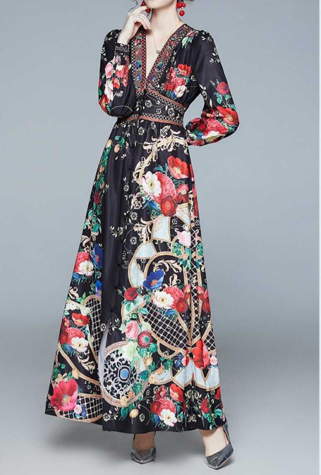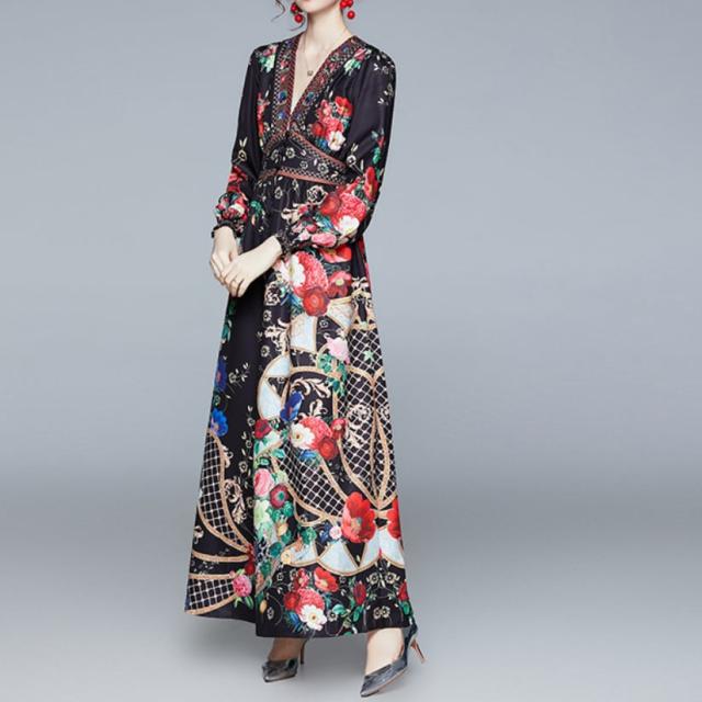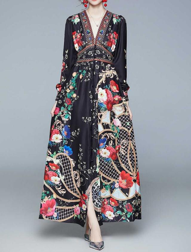 ワンピース チュニック 上着 人気 おすすめ おしゃれ お洒落 激安 安い 送料無料 プチプラ 長袖 ロング Vネック マキシ ロングスカート 柄 プリント 花柄 エスニック ボヘミアン