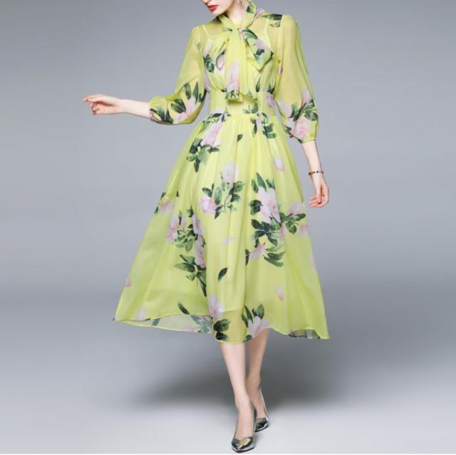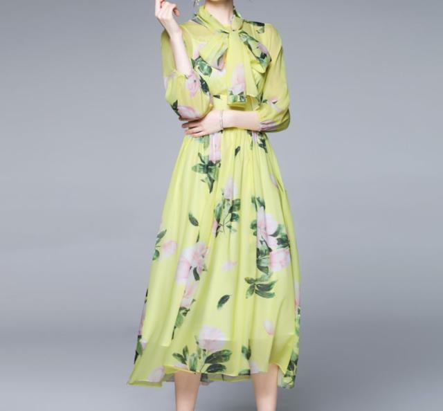ワンピース 上着 人気 おすすめ おしゃれ お洒落 激安 安い 送料無料 プチプラ 長袖 ロング ハイネック ふんわり とろみ ロングスカート 柄 プリント 花柄 リボン シアー 透け