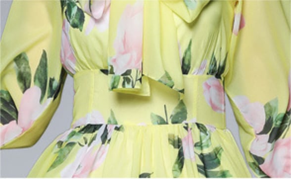 春らしいエレガントなフラワープリントの上品なシルエットのワンピース。