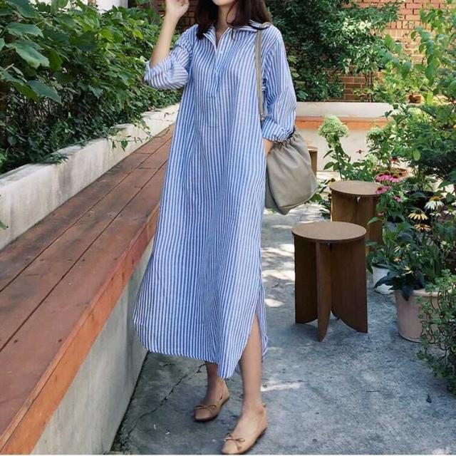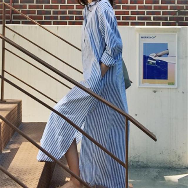 ワンピース 上着 人気 おすすめ おしゃれ お洒落 激安 安い 送料無料 プチプラ ブラウス シャツ 長袖 ロング オーバーサイズ オープンカラー 開襟 柄 ストライプ プリント コットン 綿