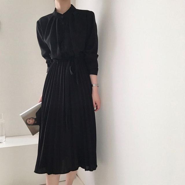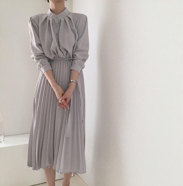 ワンピース 上着 人気 おすすめ おしゃれ お洒落 激安 安い 送料無料 プチプラ ブラウス 長袖 ロング スタンドカラー ハイネック とろみ ふんわり 無地 リボン コットン 綿 ポリエステル