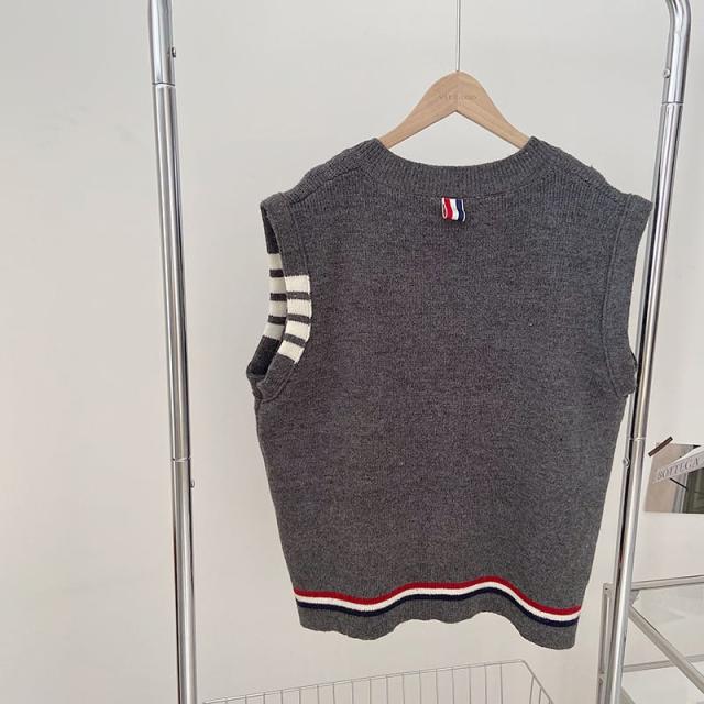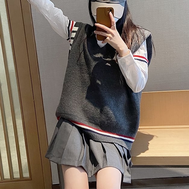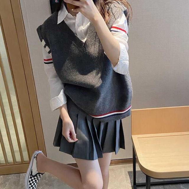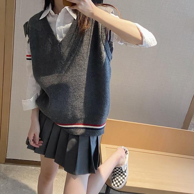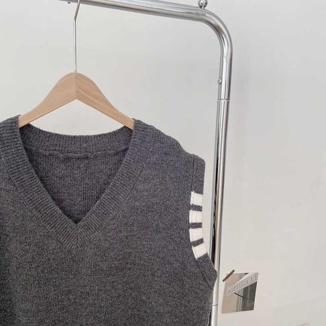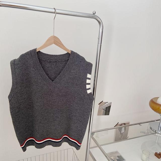 レディース ベスト ざっくり Vネック ニット インスタ映え 美スタイル トリコロール ライントラッド 暖かい 可愛い かわいい 韓国 かっこいい カジュアル きれいめ シンプル クラシック