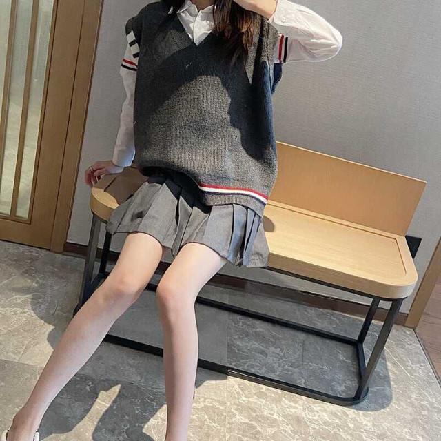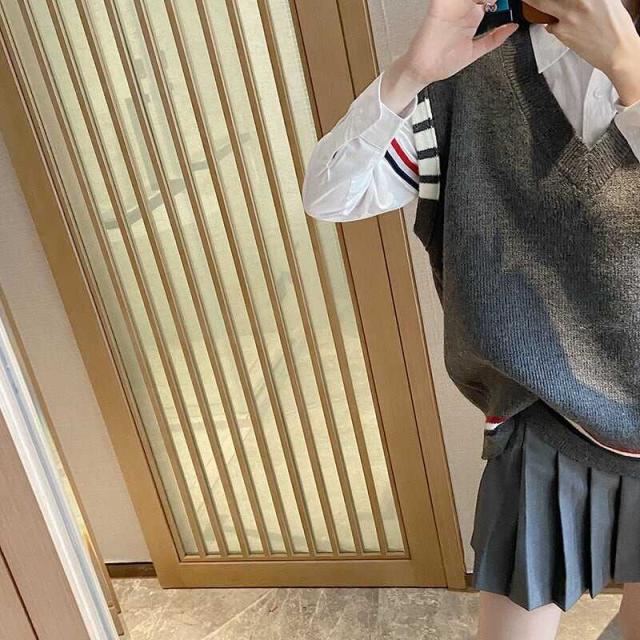 柔らかい肌触りでのトラッドなラインが可愛いニットベスト。