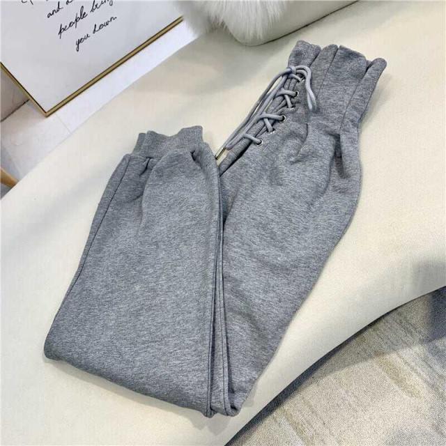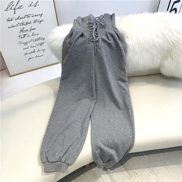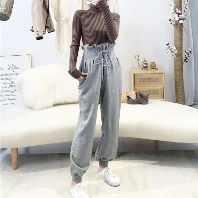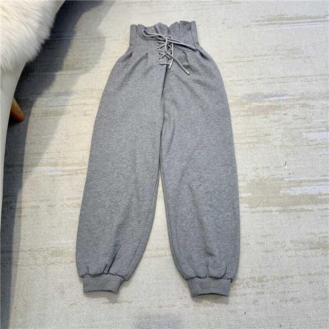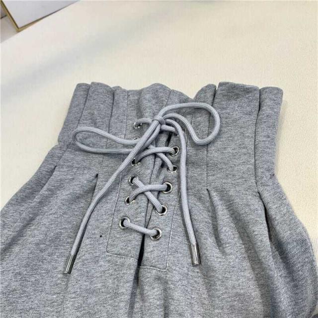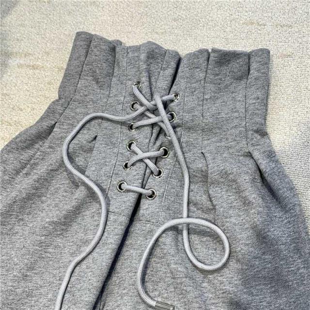 ボトムス パンツ スウェット ハイウエスト レースアップ 編み上げ プリーツ ワイド ゆったり リラックス スポーツ かわいい 大人可愛い きれいめ シンプル カジュアル 大人 上品 おしゃれ