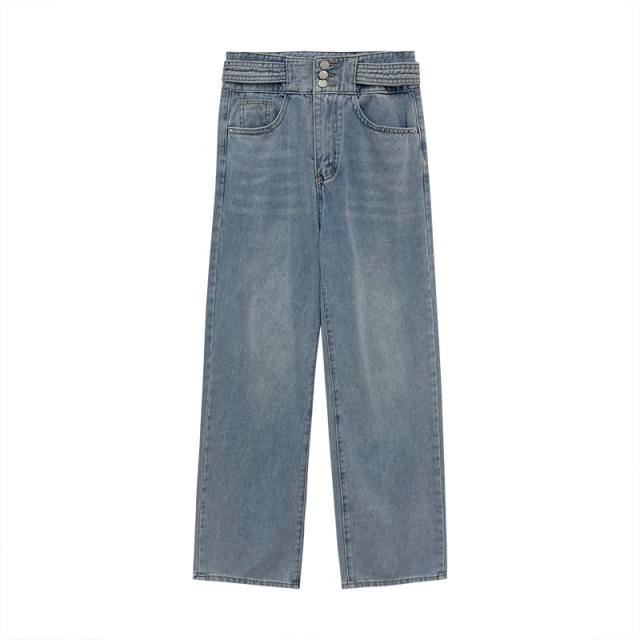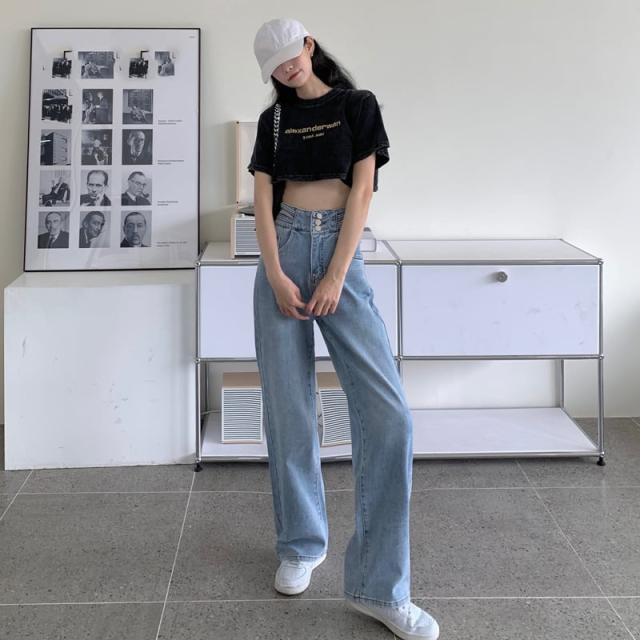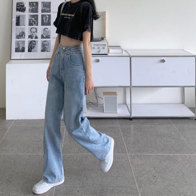 ボトムス ハイウエスト デニム パンツ ワイドレッグ ゆったり ストレート 薄手 ライトブルー ボーイッシュ ジーンズ かわいい 大人可愛い きれいめ シンプル カジュアル 大人 上品