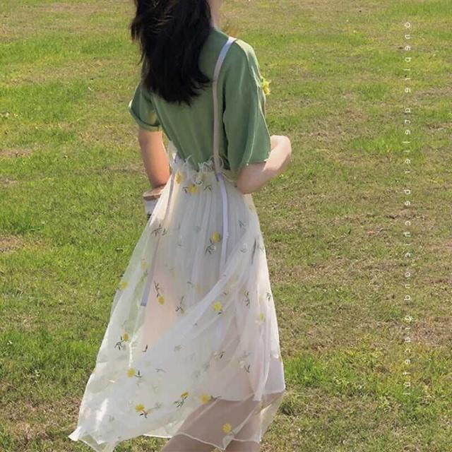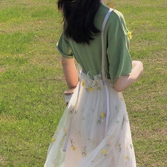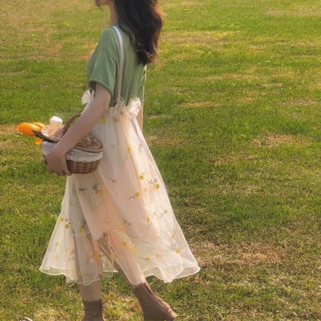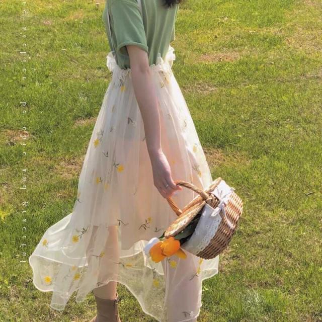 ボトムス フレア チュール スカート 花柄 刺繍 フラワー レトロ サスペンダースカート ひざ下 メッシュ かわいい 大人可愛い きれいめ シンプル カジュアル 大人 上品 おしゃれ お洒落
