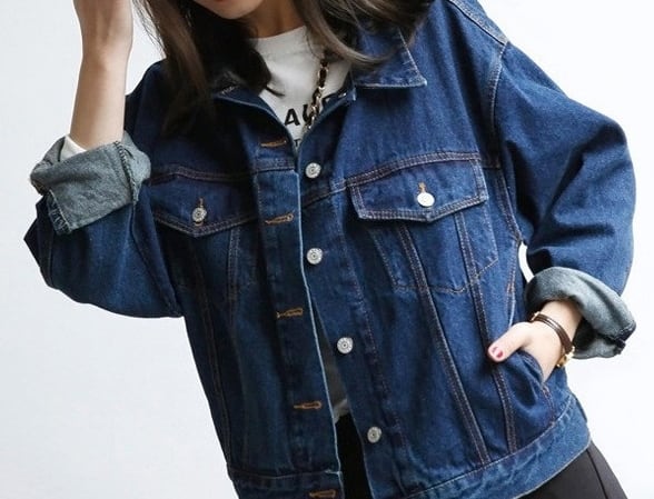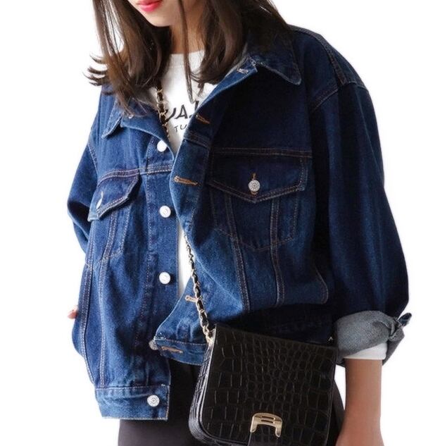 コート アウター ショート クロップ丈 無地 ミニマル ドロップショルダー デニム Gジャン デニムブルー ヴィンテージ風 切り替え 袖あり 長袖 ポケット付き アウター 羽織り 大人可愛い