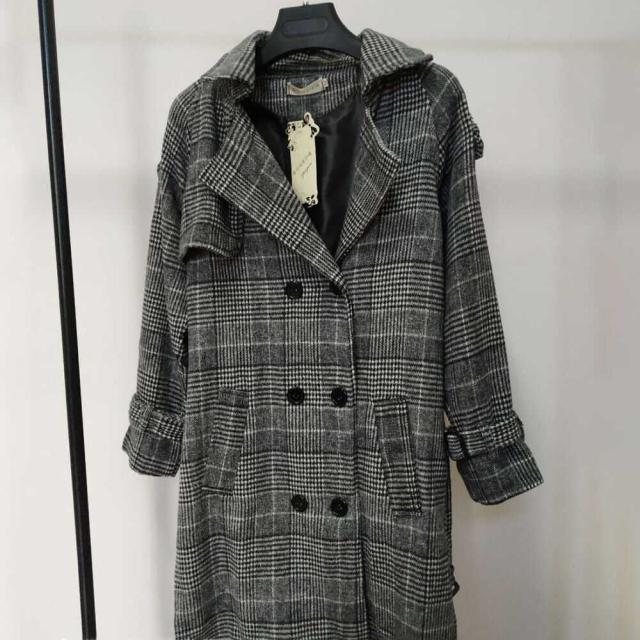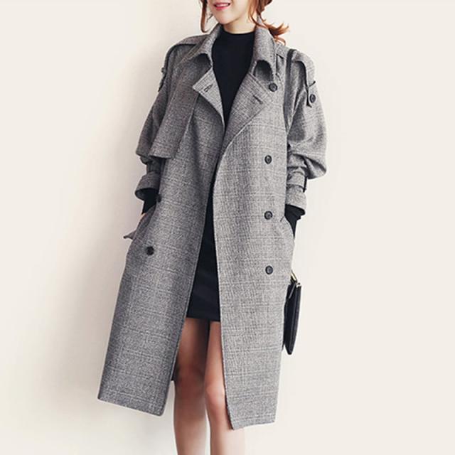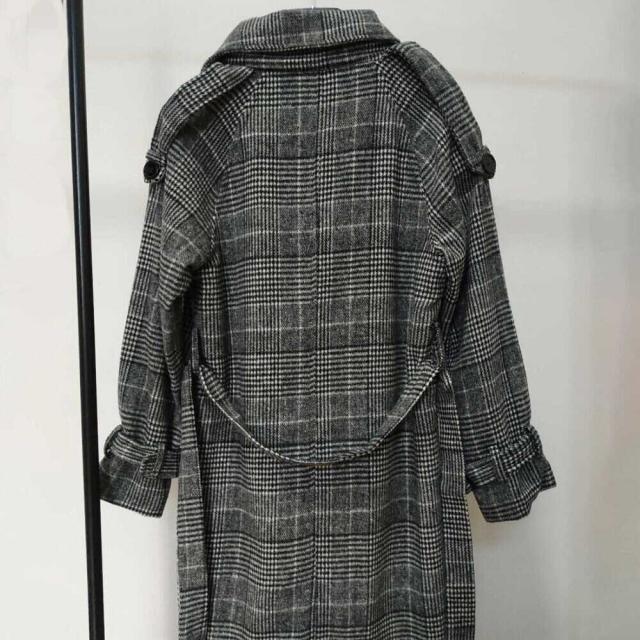 アウター 上着 コート トレンチコート ロングコート チュニック丈 膝丈 Aライン フレアシルエット オーバーサイズ チェック 格子柄 千鳥柄 襟付き ダブルブレスト 体型カバー