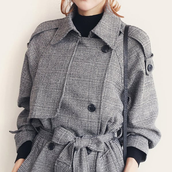 羽織るだけで上品に決まるグレンチェックのロングトレンチコート。