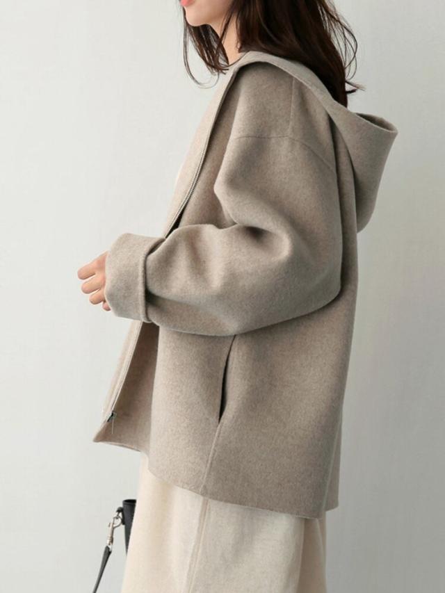 レディース コート アウター 長袖 ロング ボリューム スリーブ とろみ 美シルエット ロング丈 ジップアップ モコモコ 韓国 新作 可愛い かわいい かっこいい カジュアル 高品質 大人 上品