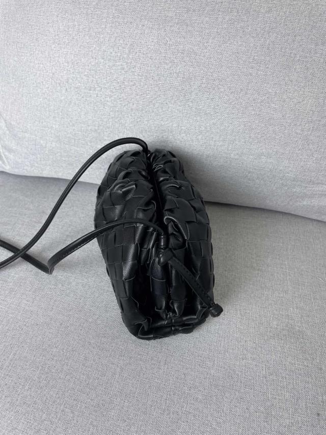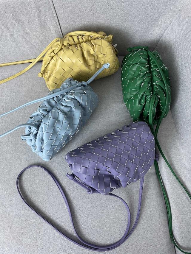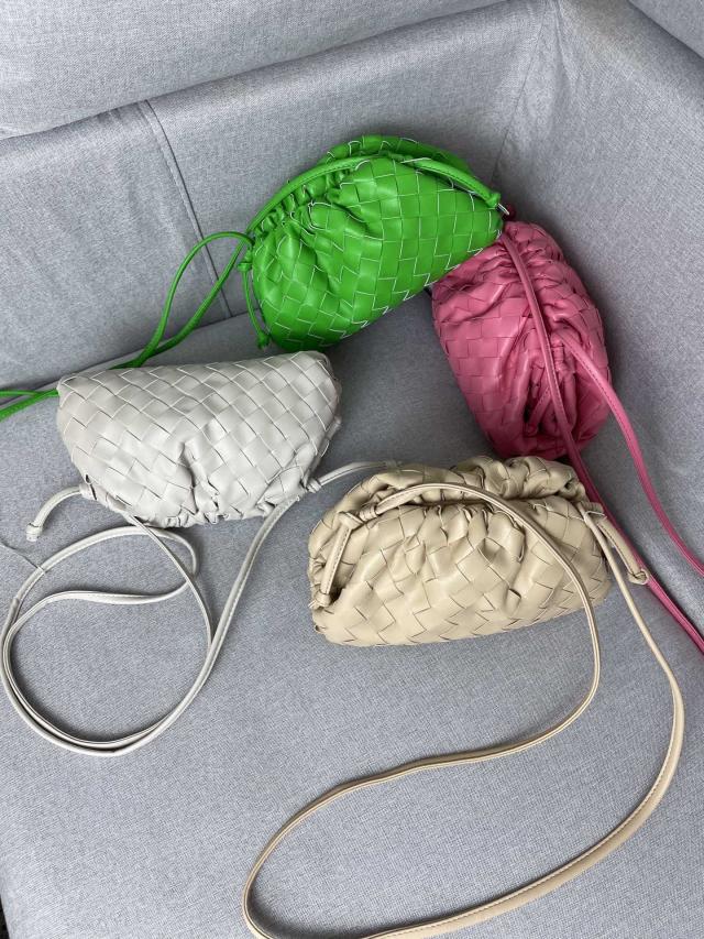カラフルな編み込みデザインのミニショルダーバッグ。