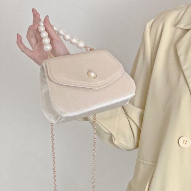 エレガントなベルベット生地の2WAYショルダーハンドバッグ。